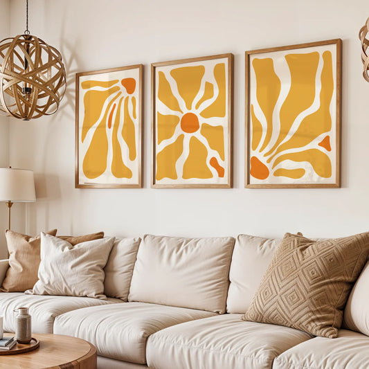 Boho Flower, Set of 3, Modern Wall Art, Mid Century Modern