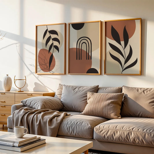 Boho Leaves, Set of 3, Modern Wall Art, Mid Century Vibe