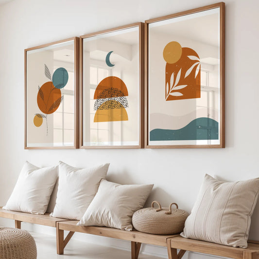 Boho Moon and Lines, Set of 3, Modern Wall Art, Mid Century Modern