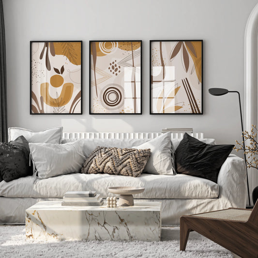 Boho Leaves III, Set of 3, Modern Wall Art, Mid Century Modern