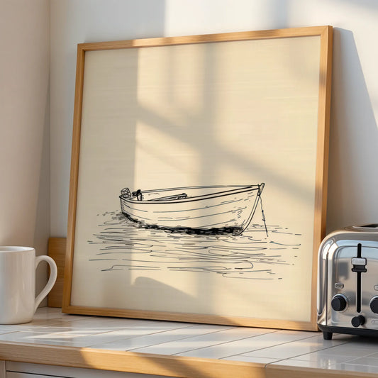 Minimal Boho Boat I, Black & White Mid Century Modern, Boho Art Painting