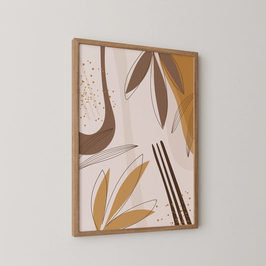 Mid Century Modern, Abstract Boho Leaves I, Wall Painting