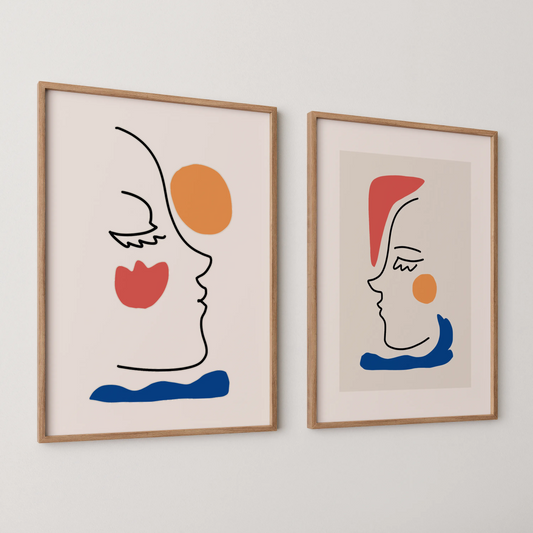 Modern Line Art, Set of 2, Mid Century Aesthetic Wall Art