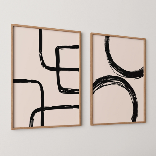 Abstract Line, Set of 2, Black & White Mid Century Aesthetic Wall Art