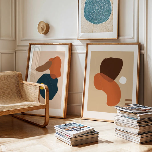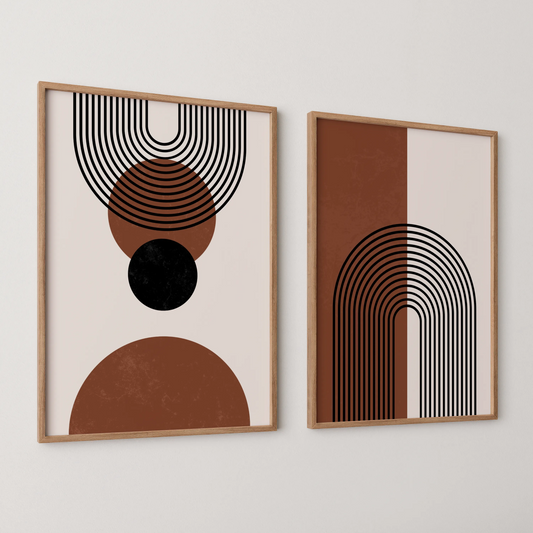 Modern Abstract, Set of 2, Mid Century Aesthetic Wall Art