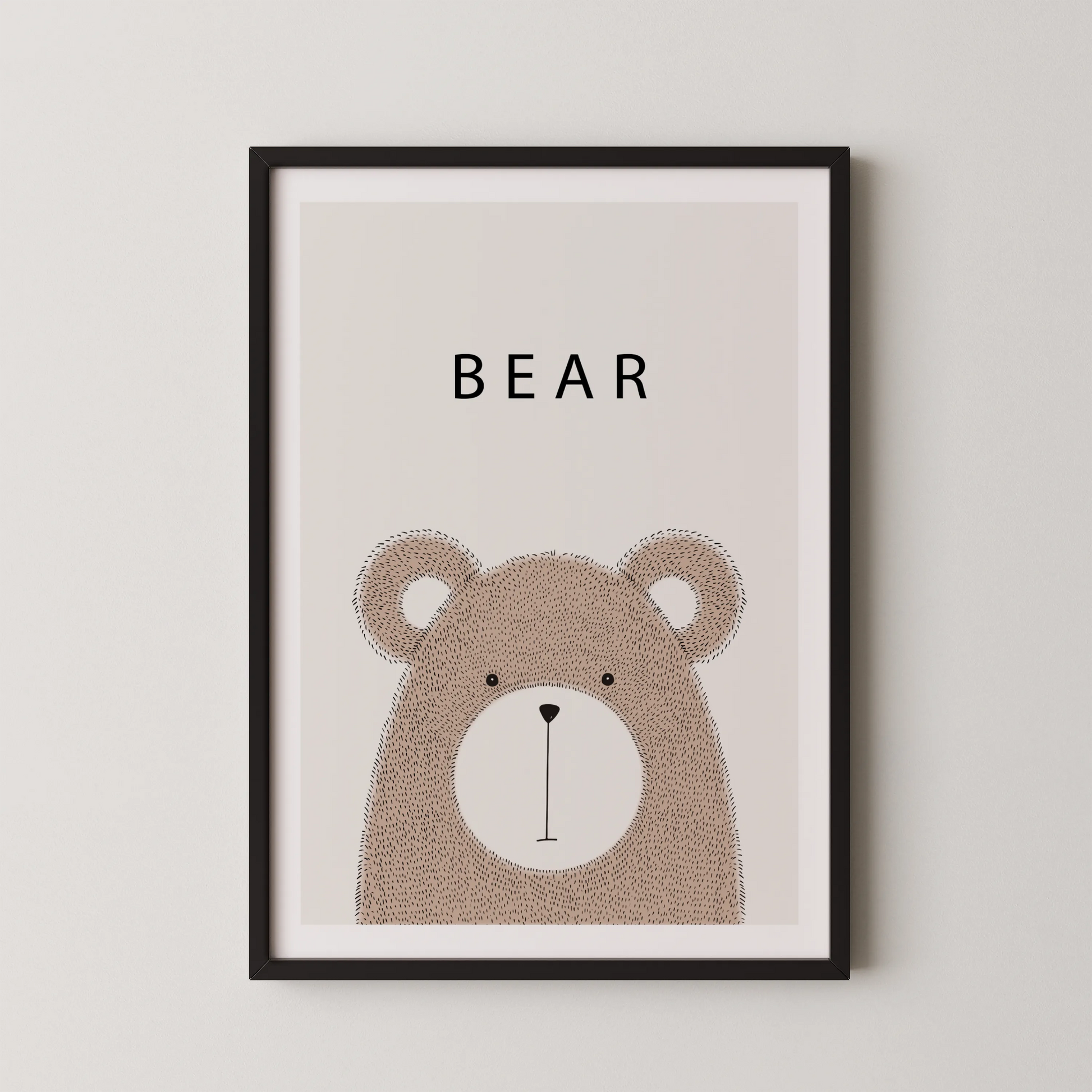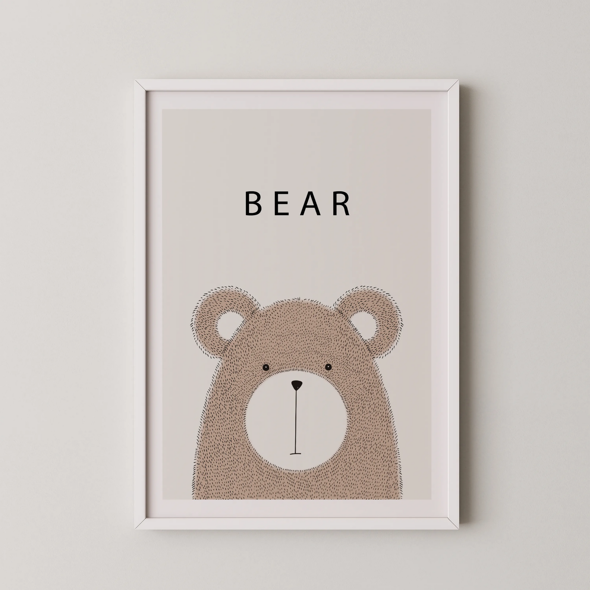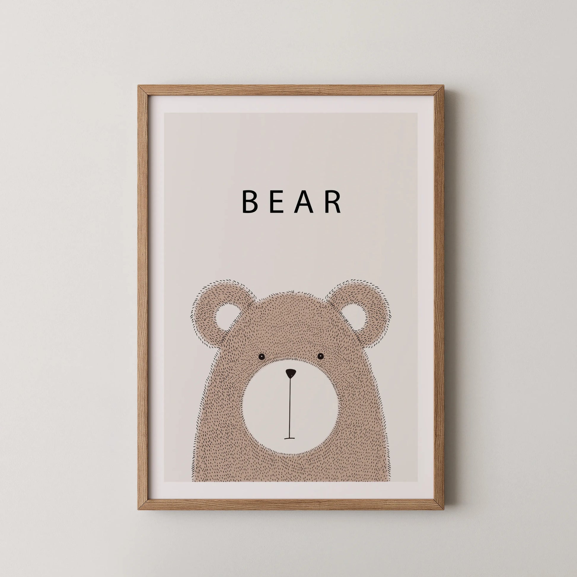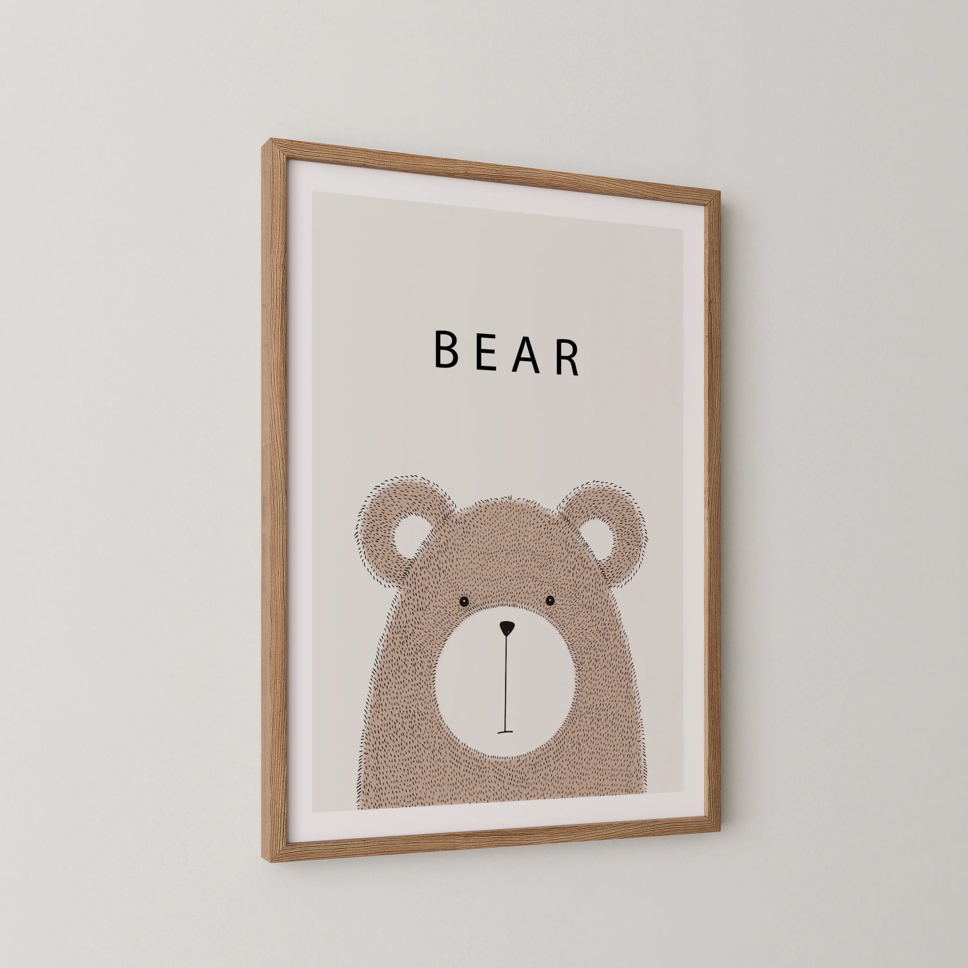 A gentle little bear rests quietly against a soft backdrop, bringing warmth and whimsy to your child’s space. With its minimal lines and soothing palette, this artwork feels playful yet calming—perfect for sparking little imaginations.