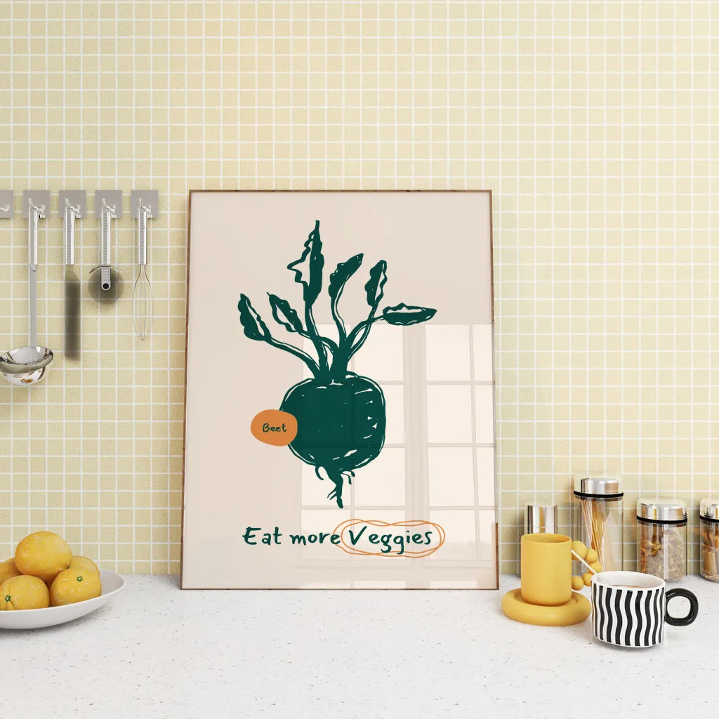 Bold strokes capture the earthy beauty of a freshly pulled beet, vibrant and full of character. This print adds a touch of rustic charm and playful energy, perfect for kitchens, dining nooks, or farm-inspired spaces.