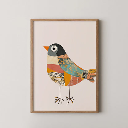 A charming nursery artwork showcasing a delicate bird perched with soft pastel tones. The light textures and whimsical style create a sense of calm and happiness, making it a lovely addition to any child’s room.