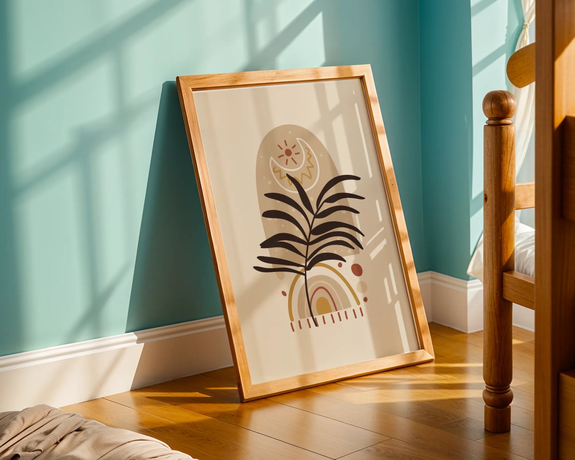 Bohemien Leaves, Mid Century, Modern Wall Painting