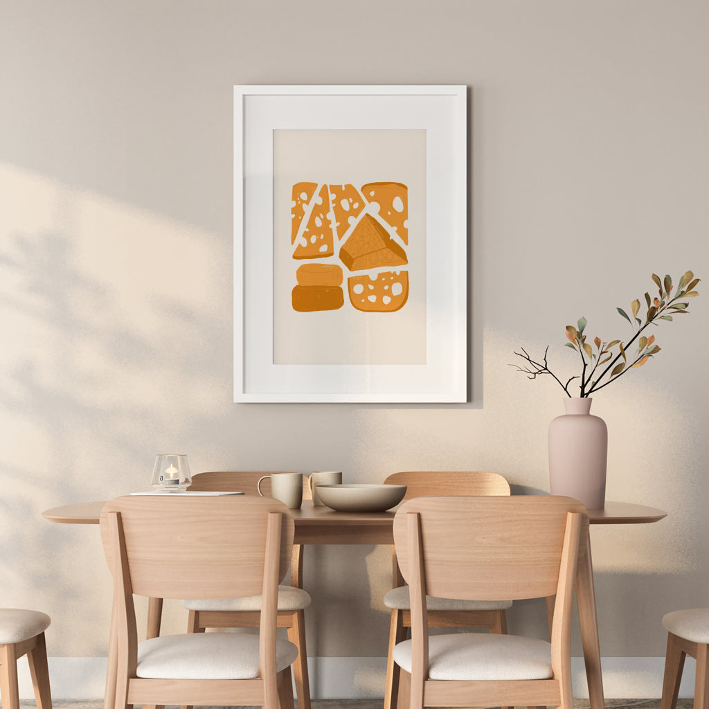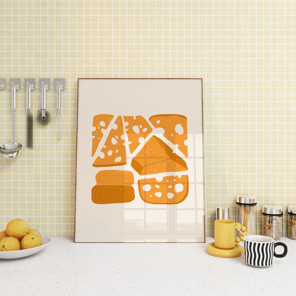 Meet Cheese a gem from our Minimal Gourmet Art Collection. Printed on premium, gallery-grade canvas and fine art paper, this piece brings soft matte texture and lush, vibrant tones to your walls.
