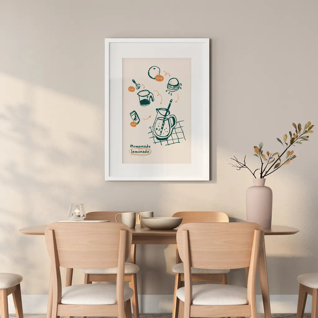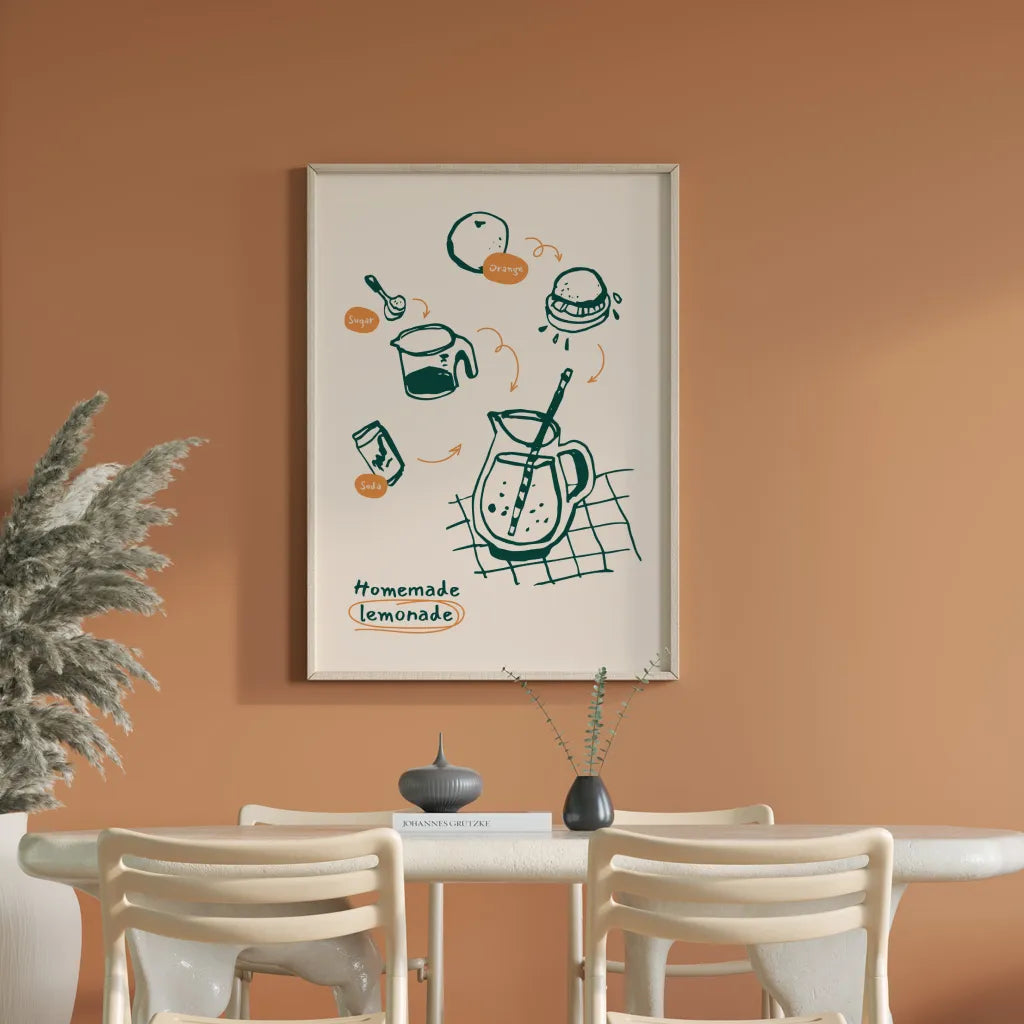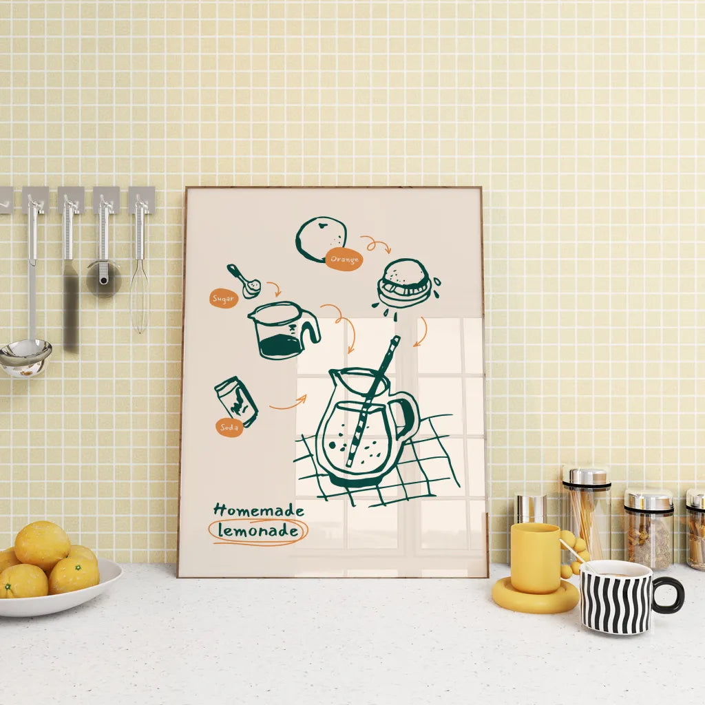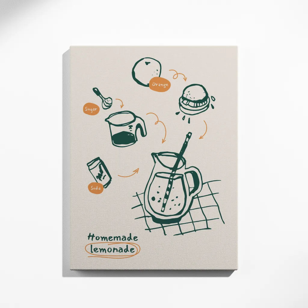Meet Homemade Lemonade a gem from our Minimal Gourmet Art Collection. Printed on premium, gallery-grade canvas and fine art paper, this piece brings soft matte texture and lush, vibrant tones to your walls.