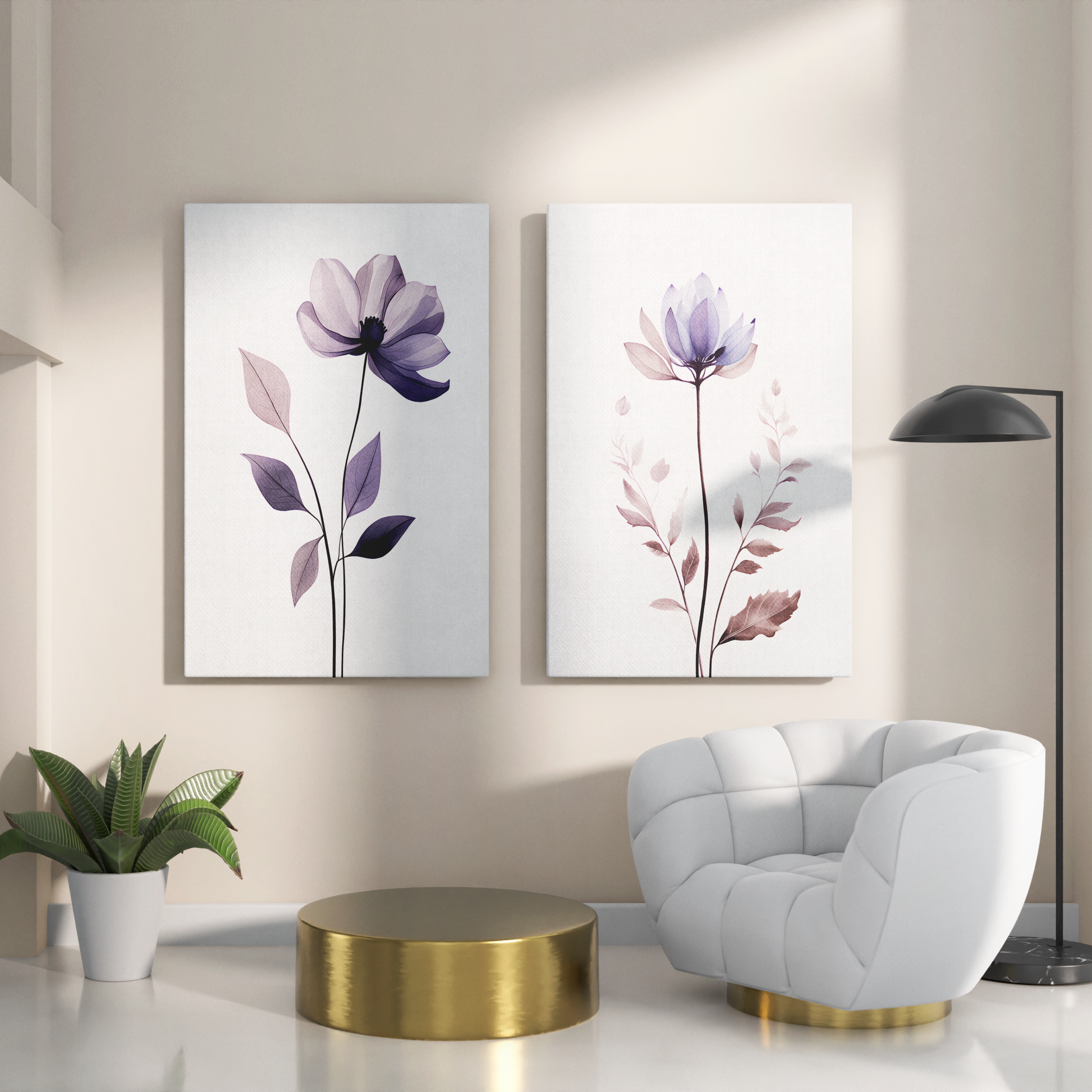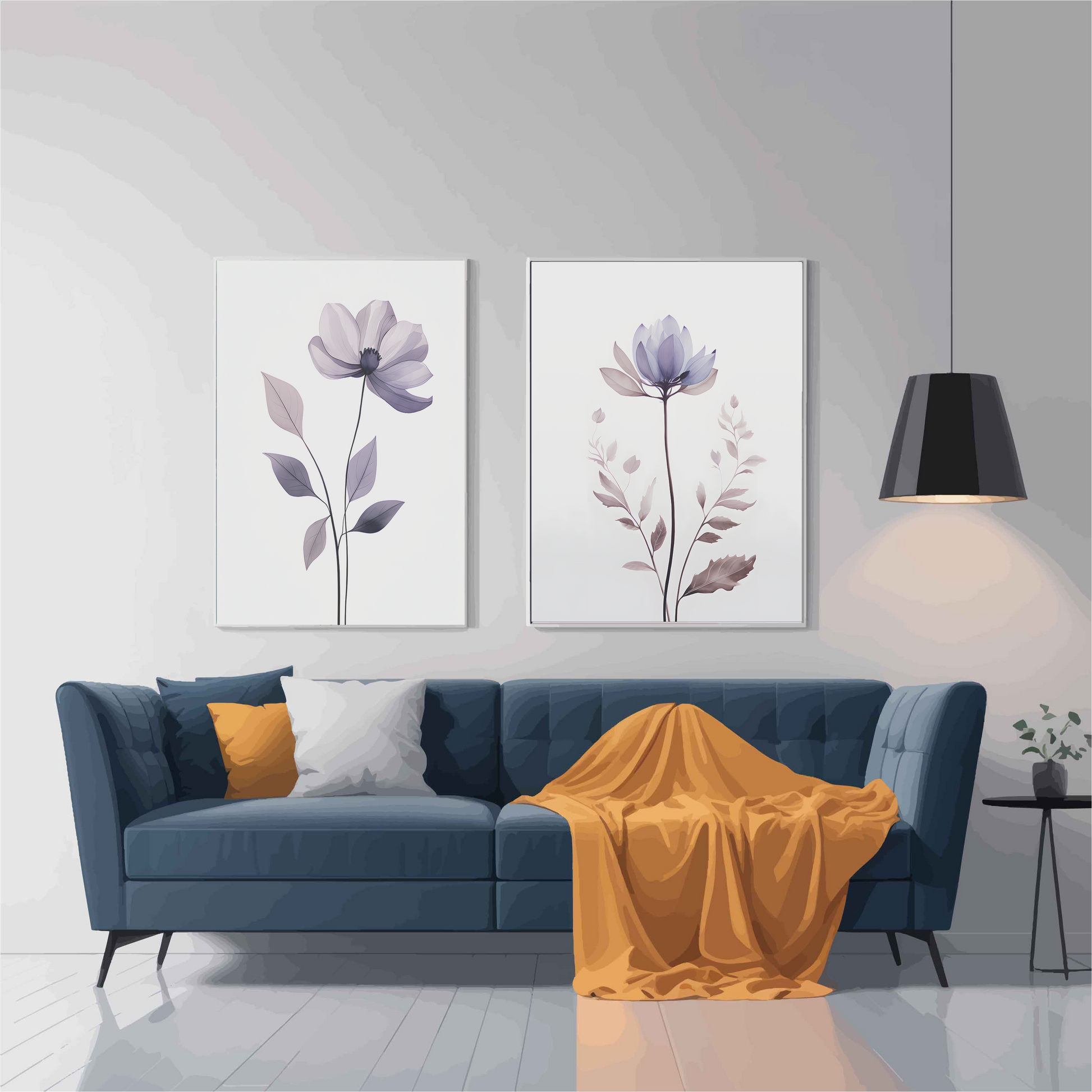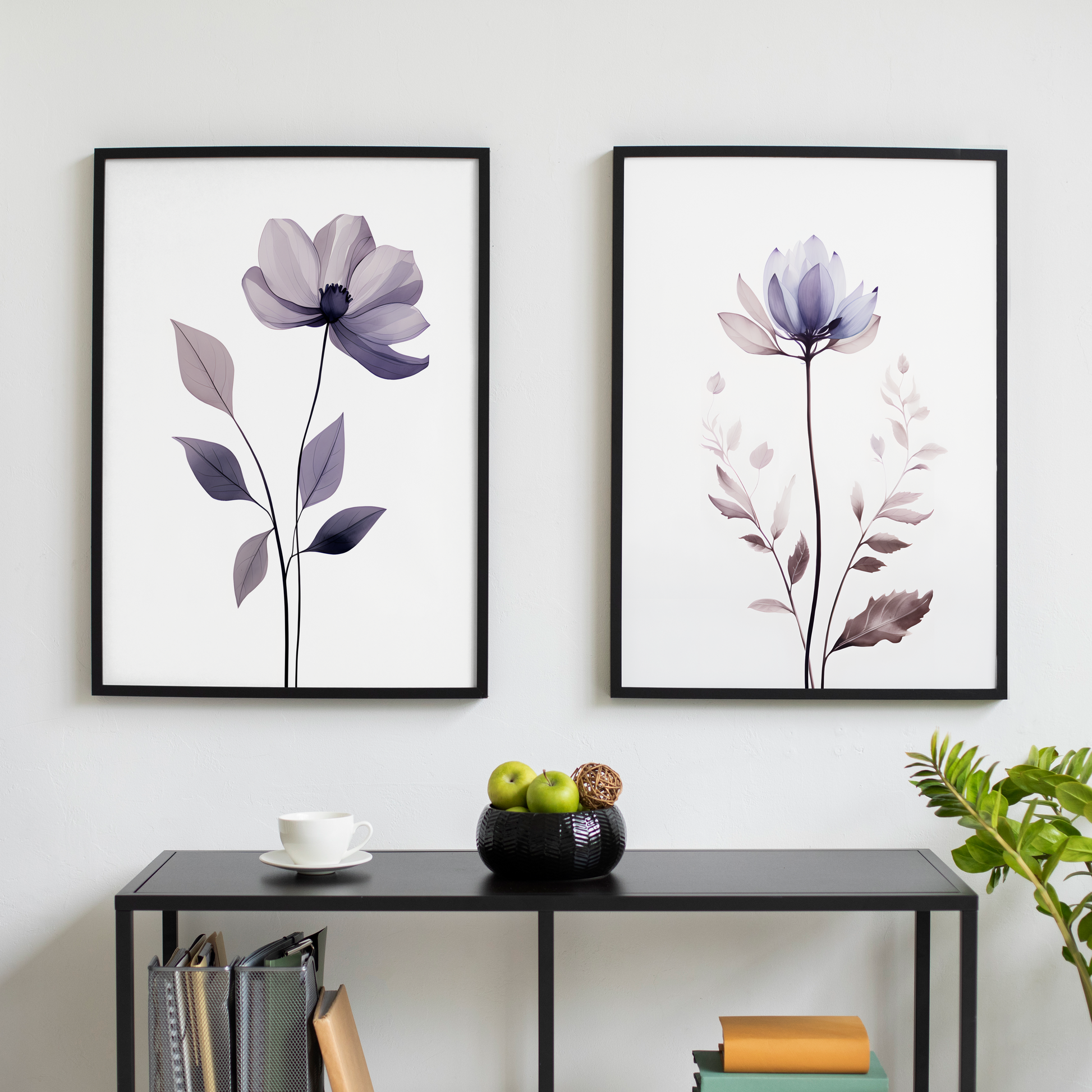 Gracefully rendered in soft lilac and blue tones, this botanical set captures the quiet elegance of nature. The translucent petals and delicate stems evoke a sense of lightness and calm. Perfect for modern interiors, it brings a serene, minimalist beauty to any space.