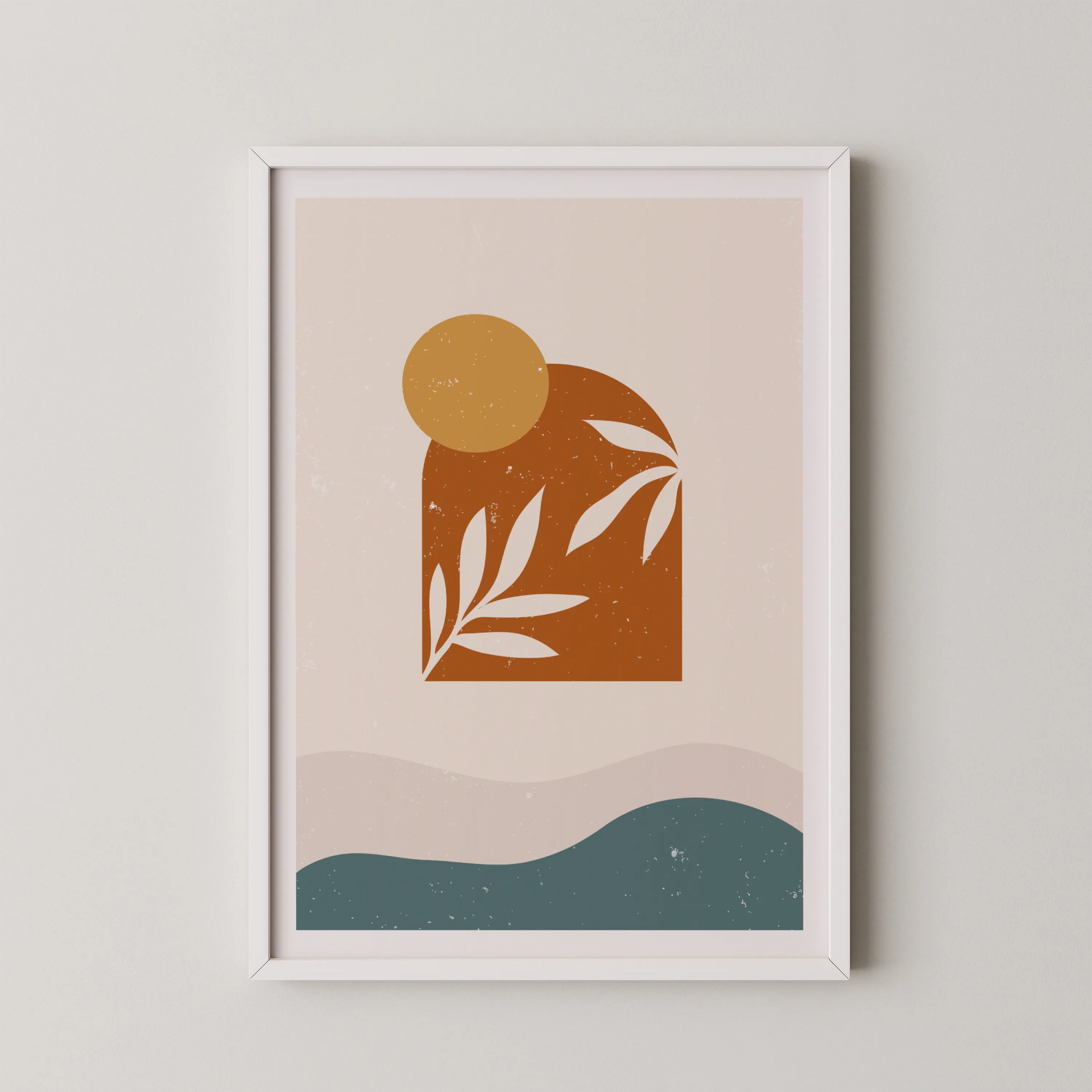 Mid Century Modern, Boho Leaves I, Wall Painting