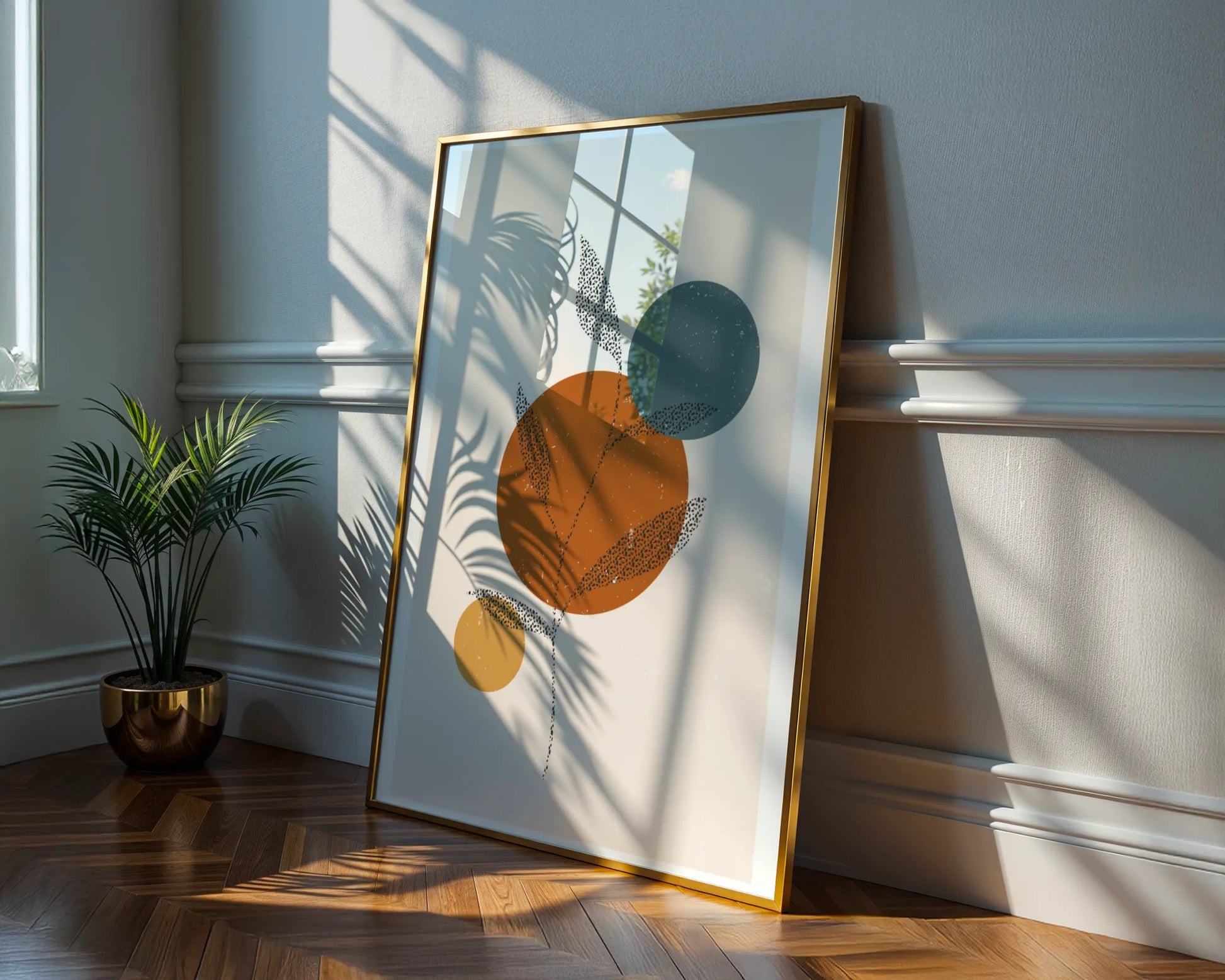 Mid Century Modern, Boho Leaves, Wall Painting