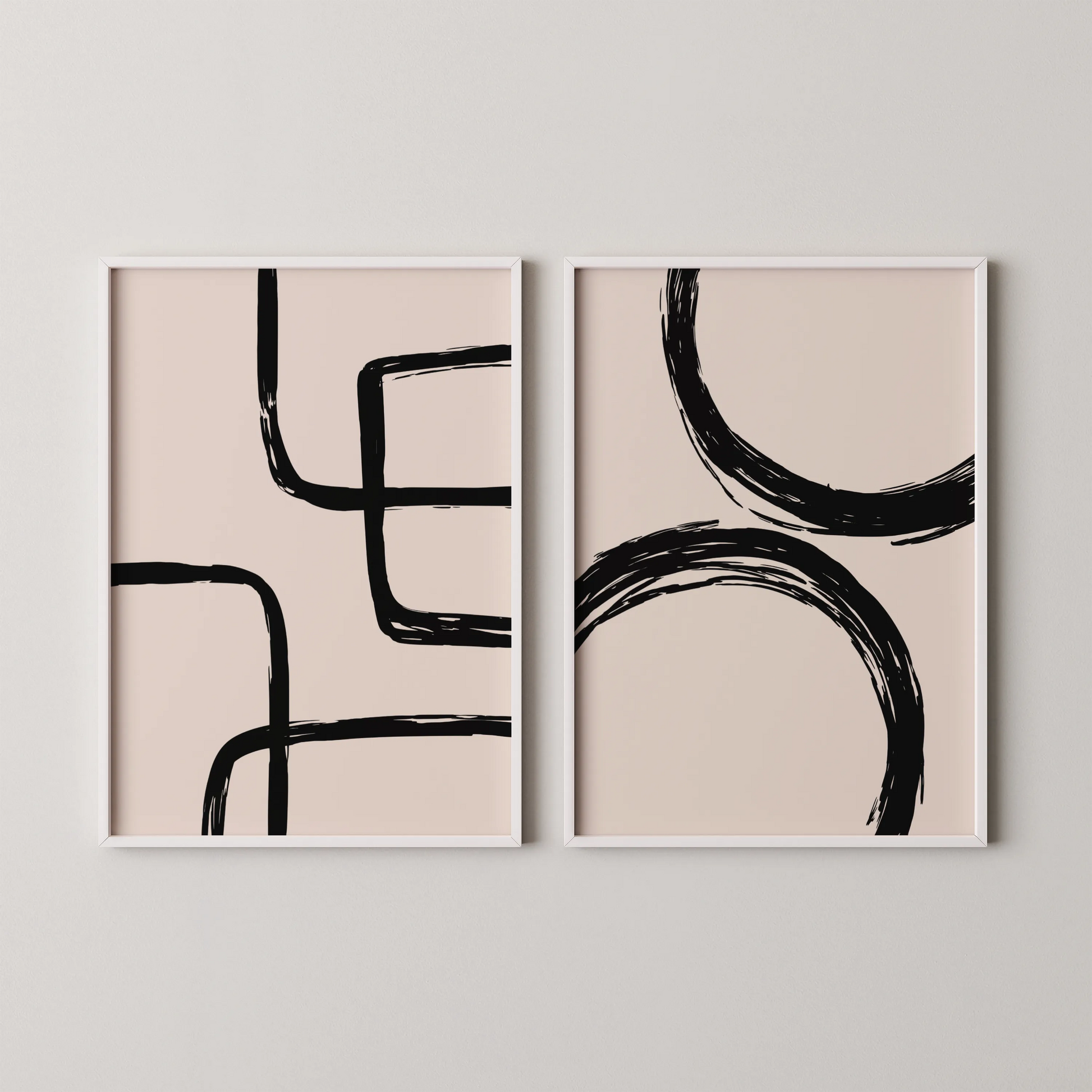 Modern Abstract Lines II, Set of 2, Black & White Mid Century Aesthetic Wall Art