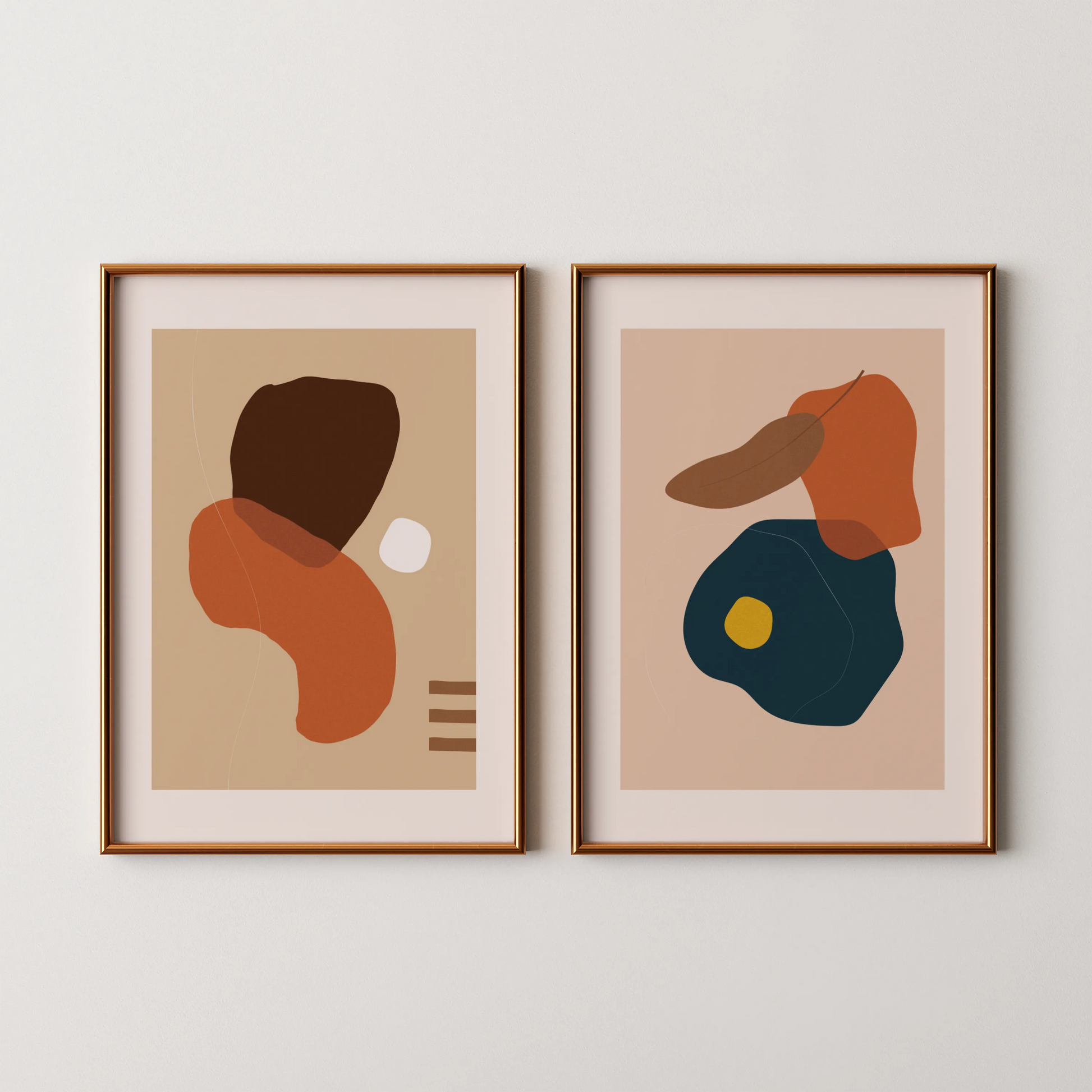 Modern Abstract, Set of 2, Mid Century Aesthetic Wall Art