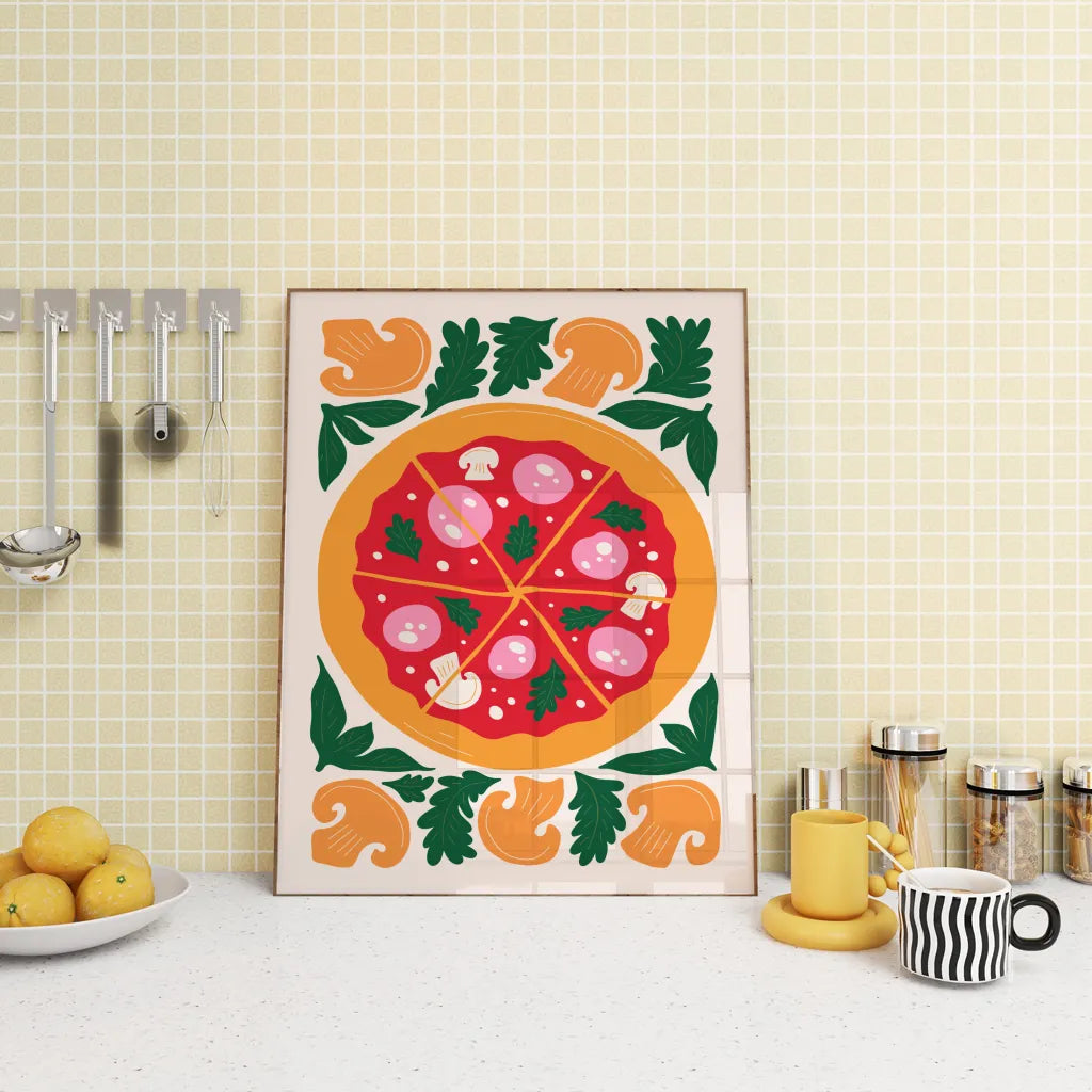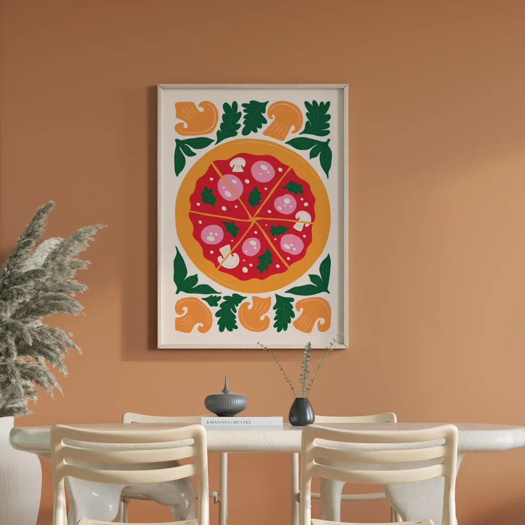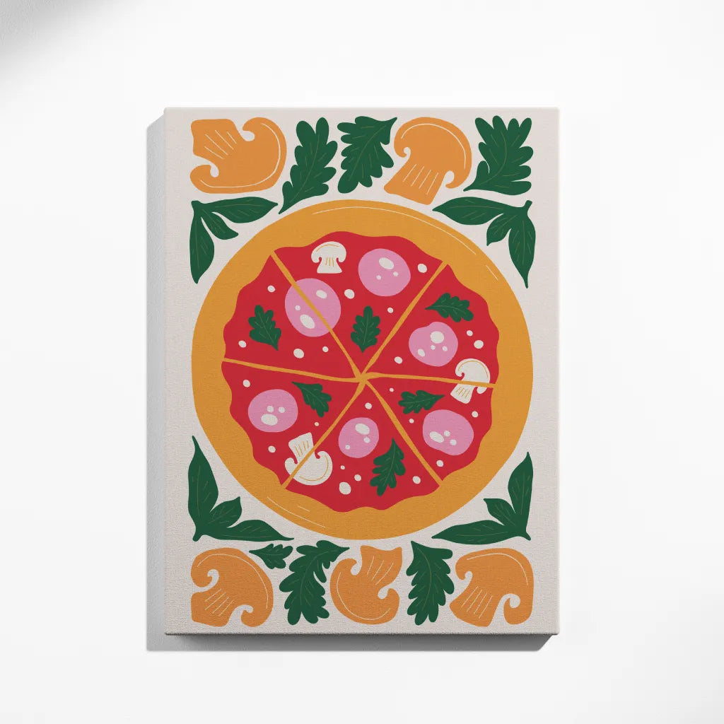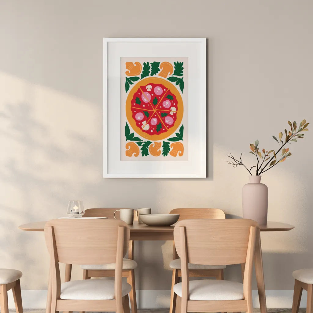 Meet Mushroom on Pizza a gem from our Minimal Gourmet Art Collection. Printed on premium, gallery-grade canvas and fine art paper, this piece brings soft matte texture and lush, vibrant tones to your walls.