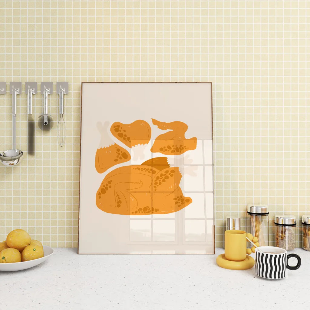 Meet Roasted Chicken a gem from our Minimal Gourmet Art Collection. Printed on premium, gallery-grade canvas and fine art paper, this piece brings soft matte texture and lush, vibrant tones to your walls.