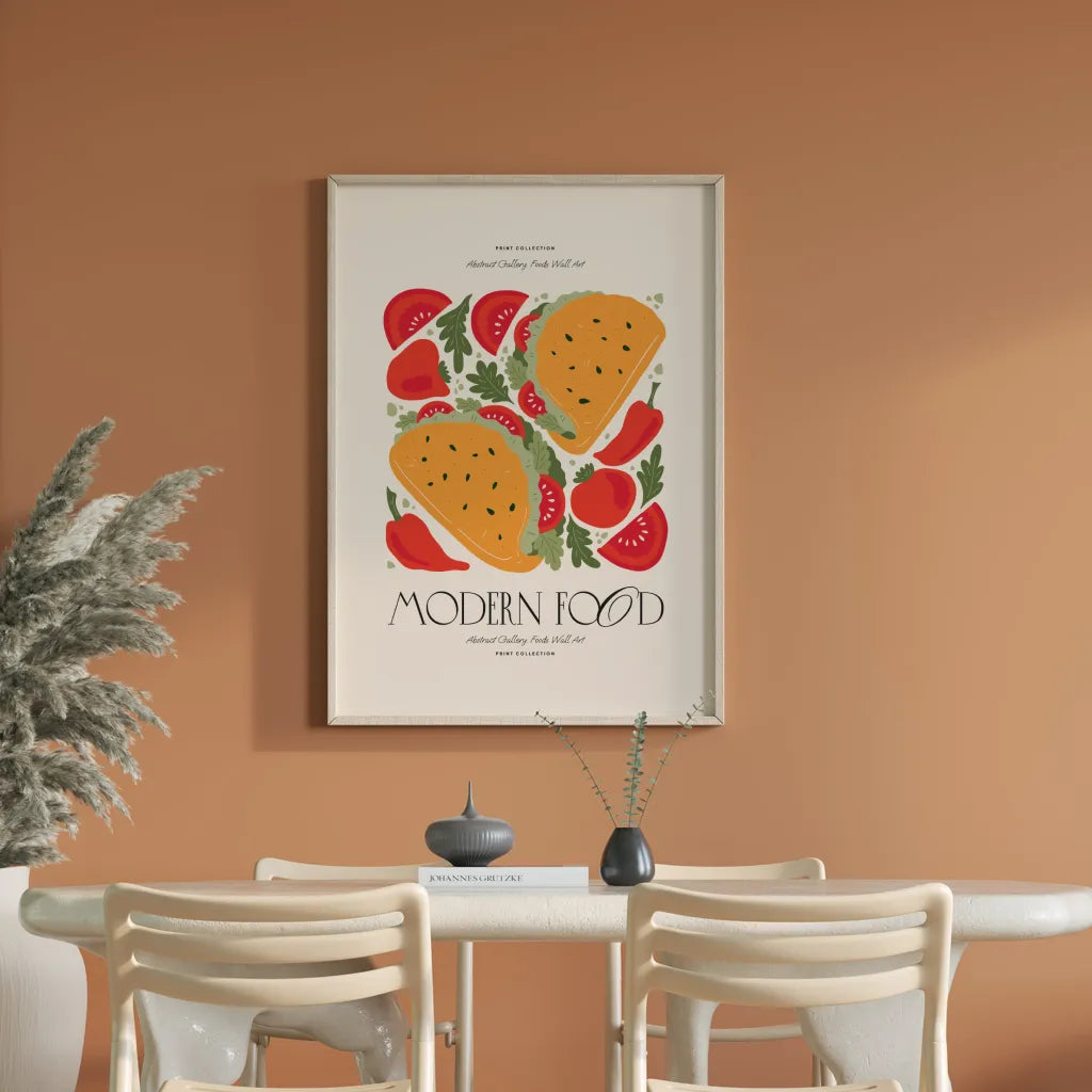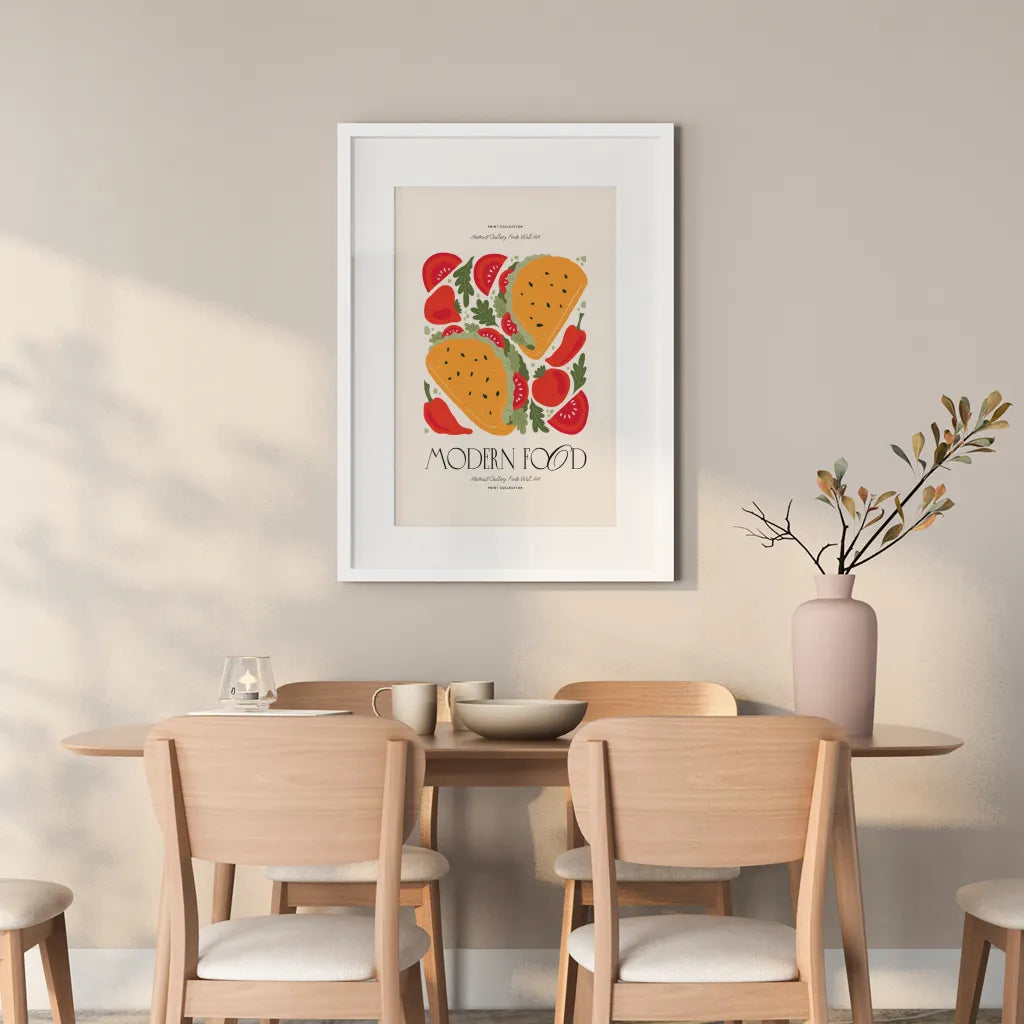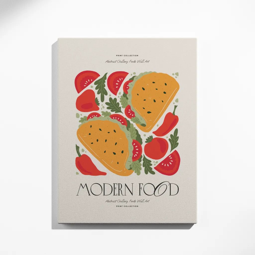 Meet Tacos a gem from our Minimal Gourmet Art Collection. Printed on premium, gallery-grade canvas and fine art paper, this piece brings soft matte texture and lush, vibrant tones to your walls.