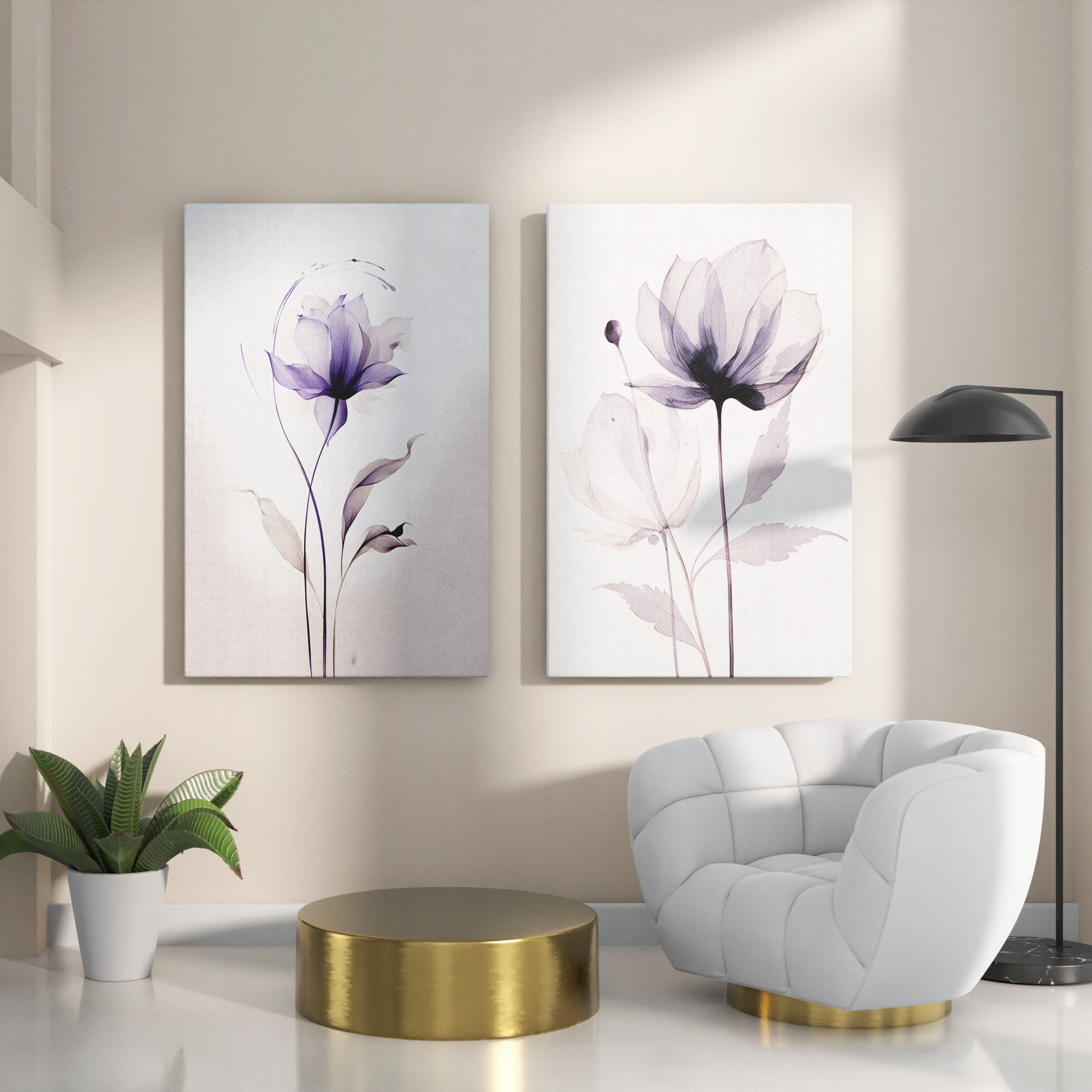 Soft lilac hues and flowing forms give Whispers in Violet its serene presence. This two-panel botanical artwork captures the quiet elegance of nature, with translucent petals that seem to float in stillness. A perfect piece to evoke calm and grace in any space.